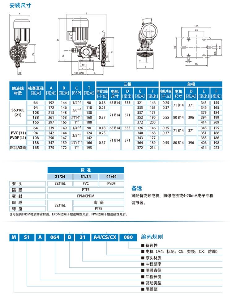 泵頭材質(zhì):SS316 PVC PVDF可選