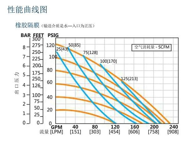 特氟隆PTFE..........................704 lpm ( 186 gpm)