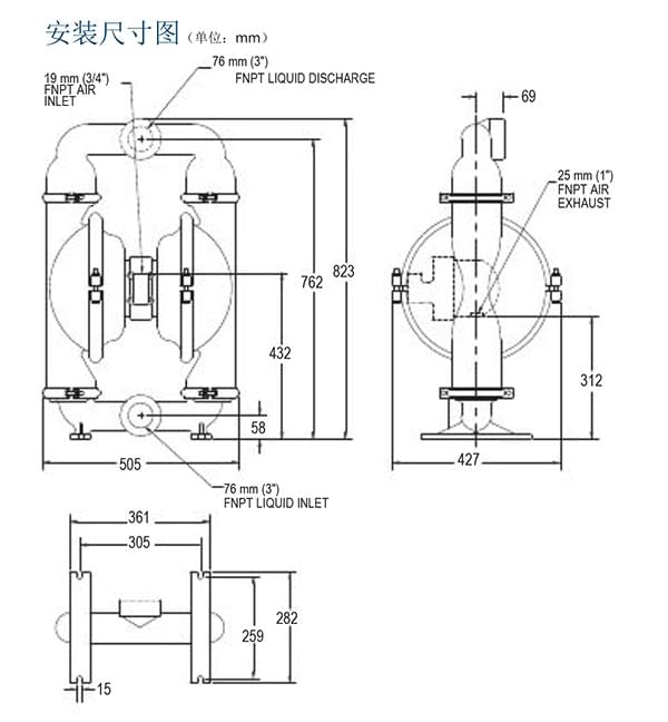 介質(zhì)出口尺寸...............................3” (76 mm)