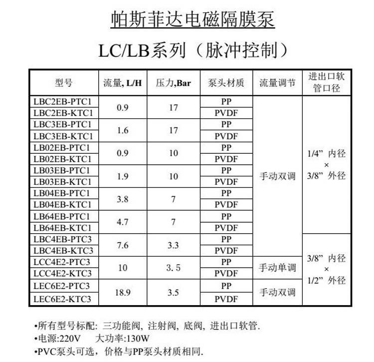 帕斯菲達(dá)加藥計量泵LEC6E2-KTC3無泄漏PVDF脈沖控制電磁泵隔膜泵