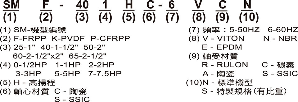 高揚程耐酸堿泵SM型型號說明: