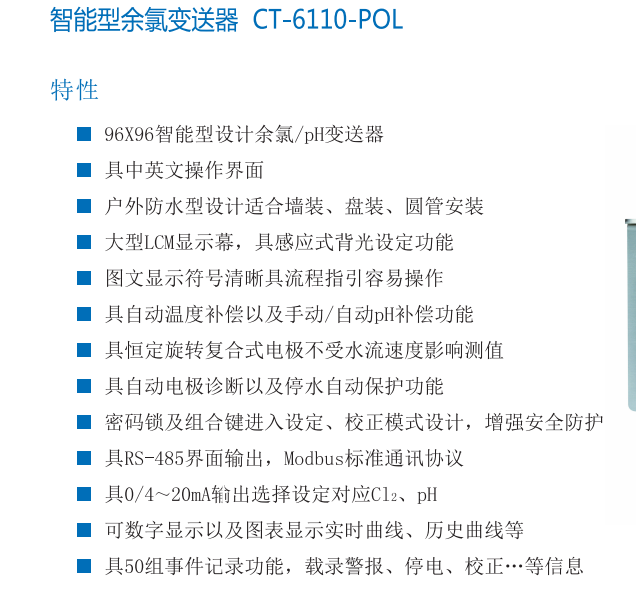 • 智能型余氯變送器 CT-6110-POL