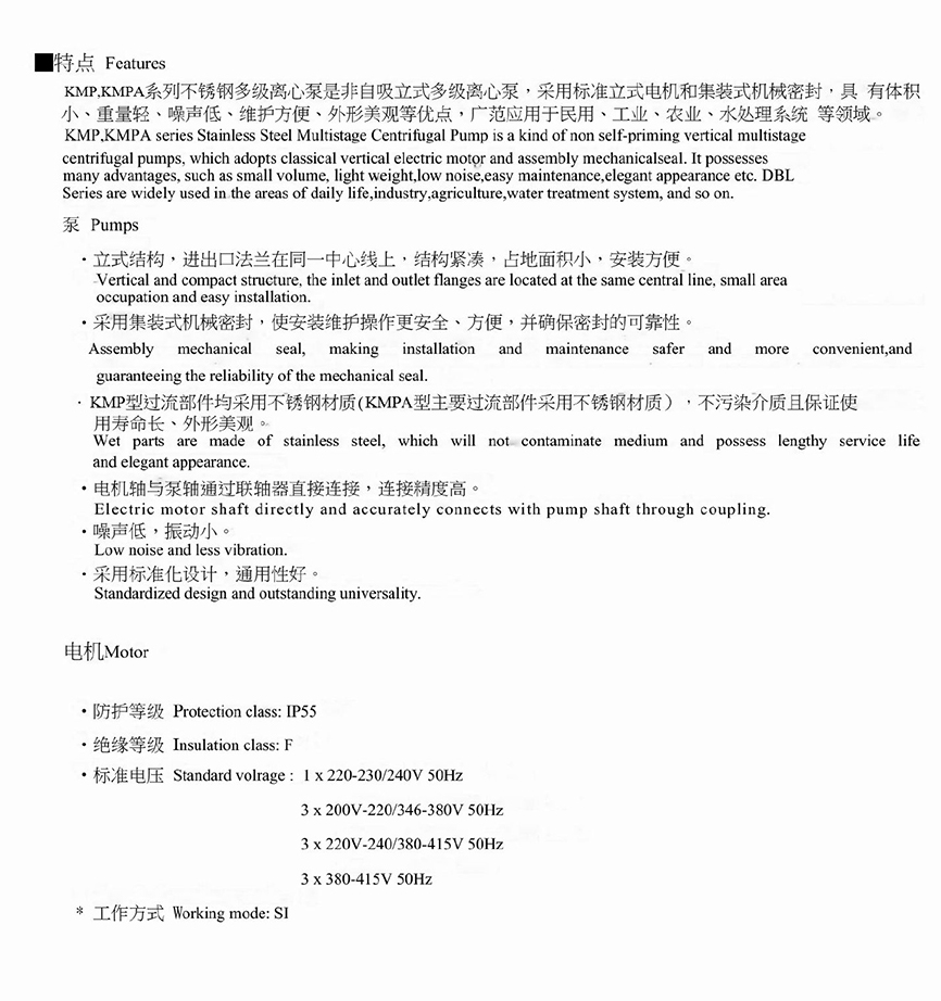 型號(hào):南方離心泵KMP系列