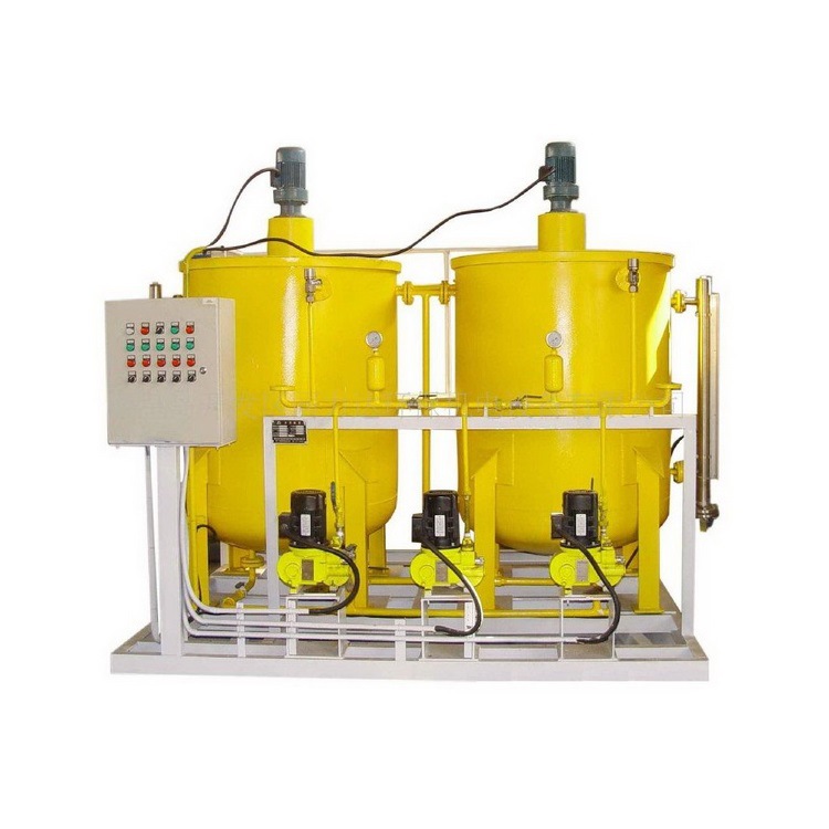 加藥裝置,通過不同的工藝設(shè)計(jì),配置各類固體和液體的化學(xué)藥品的溶液,再用計(jì)量泵準(zhǔn)確投加,以達(dá)到各種設(shè)計(jì)要求。如除垢、除氧、混凝、加酸、加堿等。加藥過程可手動(dòng)操作,也可通過PC機(jī)、磁翻板液位計(jì)、PH計(jì)、行程控制器、變頻器等各種電器、儀表、使加藥裝置成為機(jī)電一體化產(chǎn)品、實(shí)現(xiàn)自動(dòng)控制。
