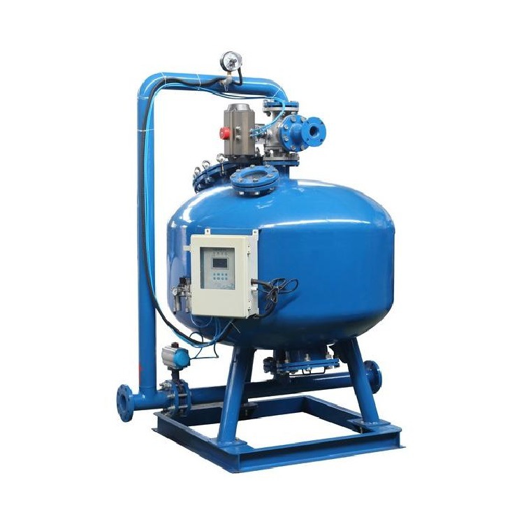 循環(huán)水系統運行過程中,尤其是冷卻水中會存在大量的懸浮物質。其中由于空氣中灰塵雜物的進入,日常加藥處理后會造成部分水垢、銹垢、微生物粘泥的脫落、分散,會造成水質的混濁。由于各種雜質在水中溶解度小,用機械過濾的方式去除,因此在系統管路上安裝旁流石英砂過濾器可收到良好效果。
