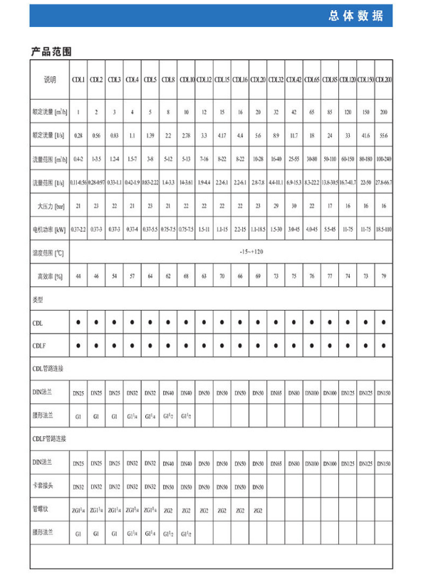 南方CDL,CDLF非自吸輕型立式多級離心泵,電機(jī)軸通過聯(lián)軸器直接與泵軸聯(lián)接,葉輪導(dǎo)葉采用不銹鋼板沖壓焊接或不銹鋼精密鑄造制成,泵進(jìn)出水口在泵底同一直線上(可配IEC或NEMA電機(jī))。