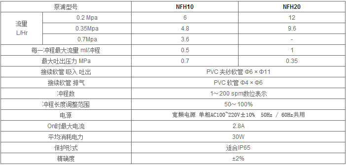 NFH日機(jī)裝電磁式隔膜計(jì)量泵產(chǎn)品參數(shù):