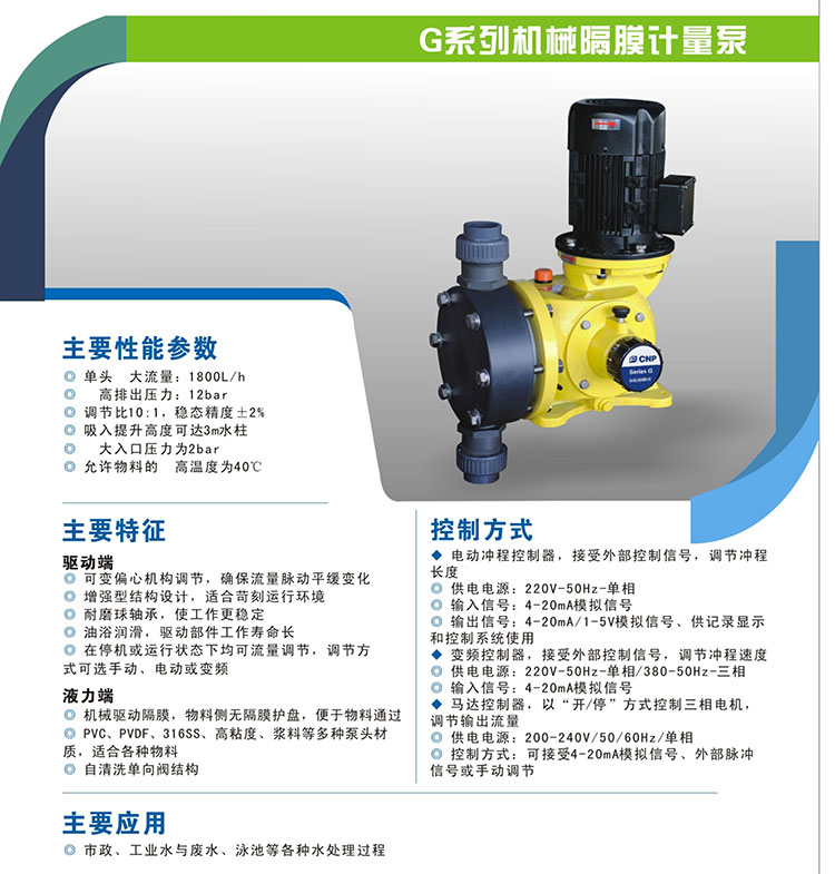 計(jì)量泵GM系列主要特征