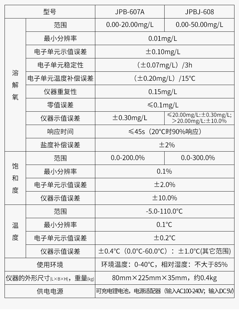 溶解氧儀JPB-607A-雷磁便攜式溶氧儀技術(shù)參數(shù)
