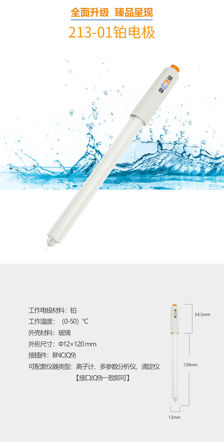 雷磁實驗室金屬電極 213-01型鉑電極傳感器探頭玻璃外殼材質(zhì)