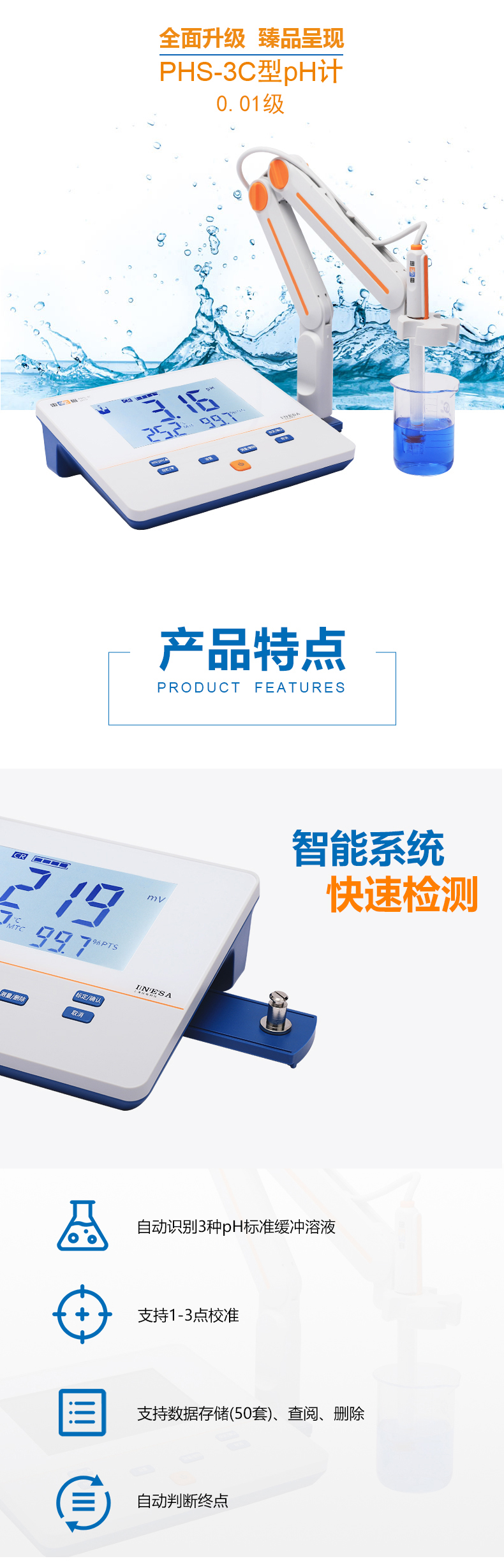雷磁(leici)PHS-3C型實驗室PH計標配套手動溫度補償臺式酸度計pH測定儀