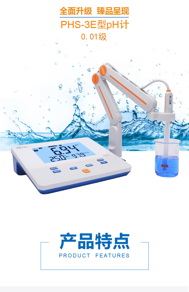 雷磁(leici)PHS-3E型實(shí)驗(yàn)室PH計(jì)標(biāo)配套裝手動(dòng)自動(dòng)溫補(bǔ)液晶顯示酸度計(jì)