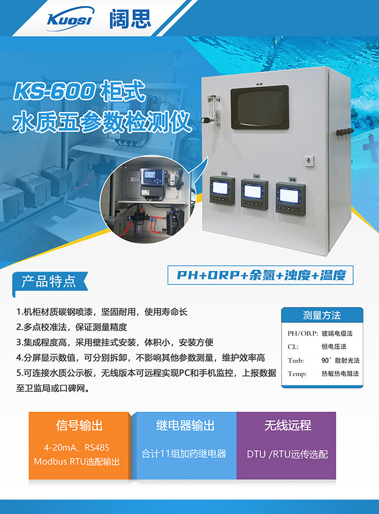 • Apure柜式五參數(shù)水質(zhì)檢測(cè)儀KS-600型泳池水處理多參數(shù)在線監(jiān)測(cè)儀