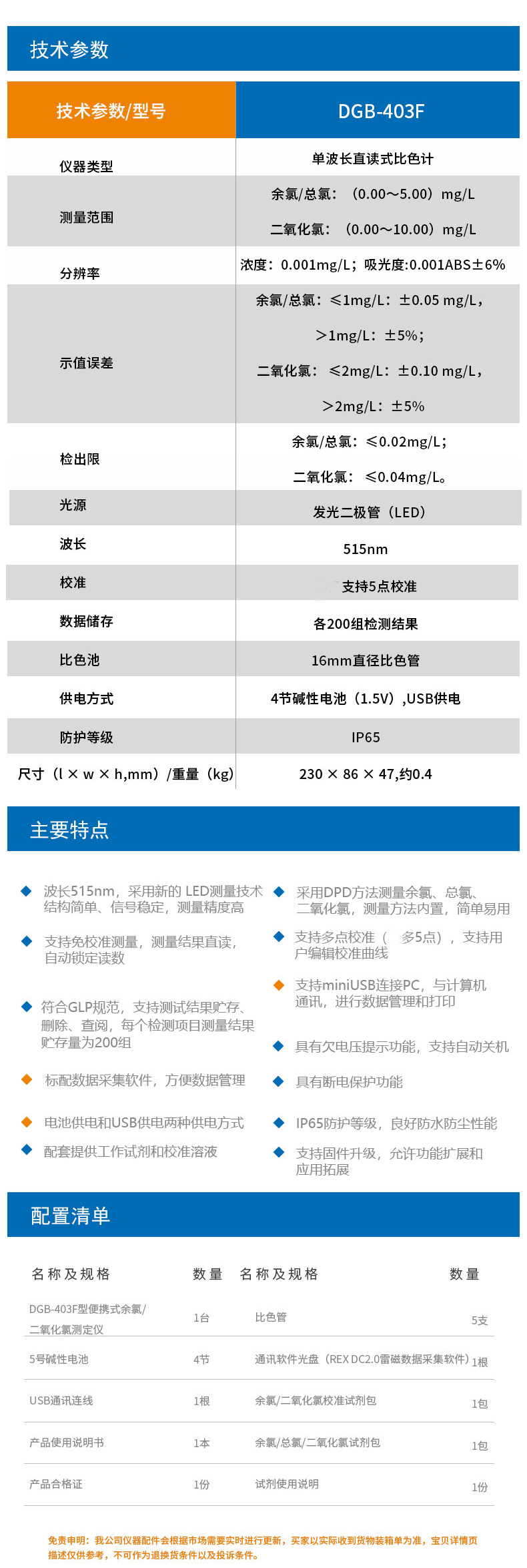 • 雷磁(leici)水質分析儀DGB-403F型便攜式余氯二氧化氯測定儀標配套裝