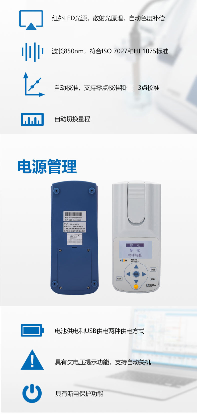 • 雷磁(leici)WZB-170型便攜式濁度計標(biāo)準(zhǔn)水質(zhì)分析儀量程自動切換濁度儀