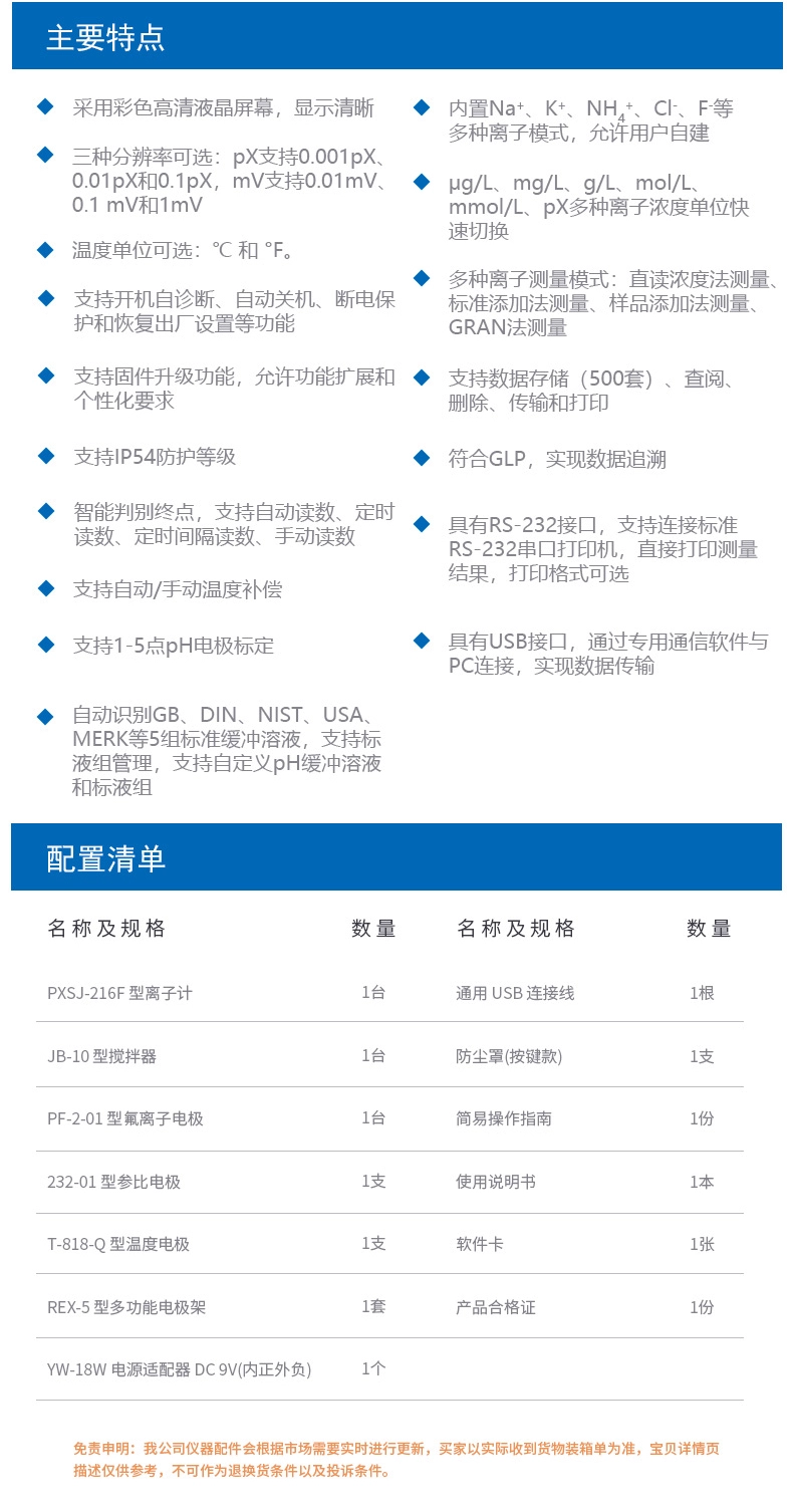 (雷磁) PXSJ-216F型離子計液晶屏幕自動手動溫度補(bǔ)償多種離子模式