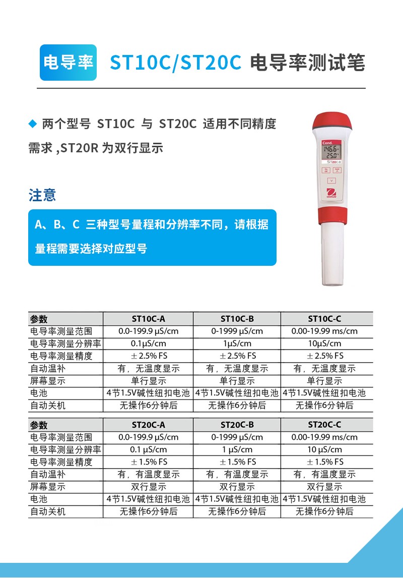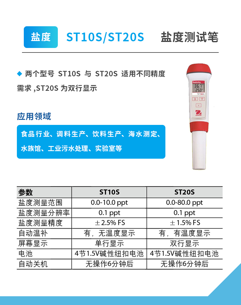 • 奧豪斯水質(zhì)測試筆ST系列便攜式多參數(shù)/PH/ORP/電導(dǎo)率/TDS/鹽度/溶解氧水質(zhì)測試儀