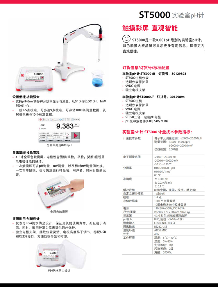 奧豪斯實驗室pH計ST5000/離子計ST5000i智能數(shù)顯ph測試儀ph控制器