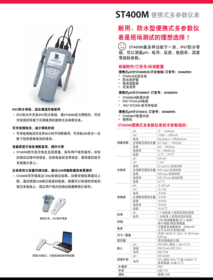 • 奧豪斯便攜式多參數(shù)儀表ST400M耐用防水多參數(shù)水質(zhì)分析儀監(jiān)測儀
