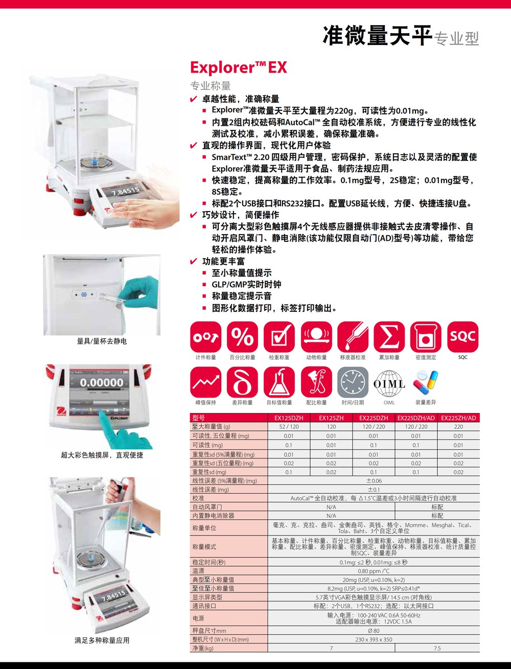 奧豪斯ExplorerEX系列分析天平實(shí)驗(yàn)室電子稱準(zhǔn)微量精密大稱量天平
