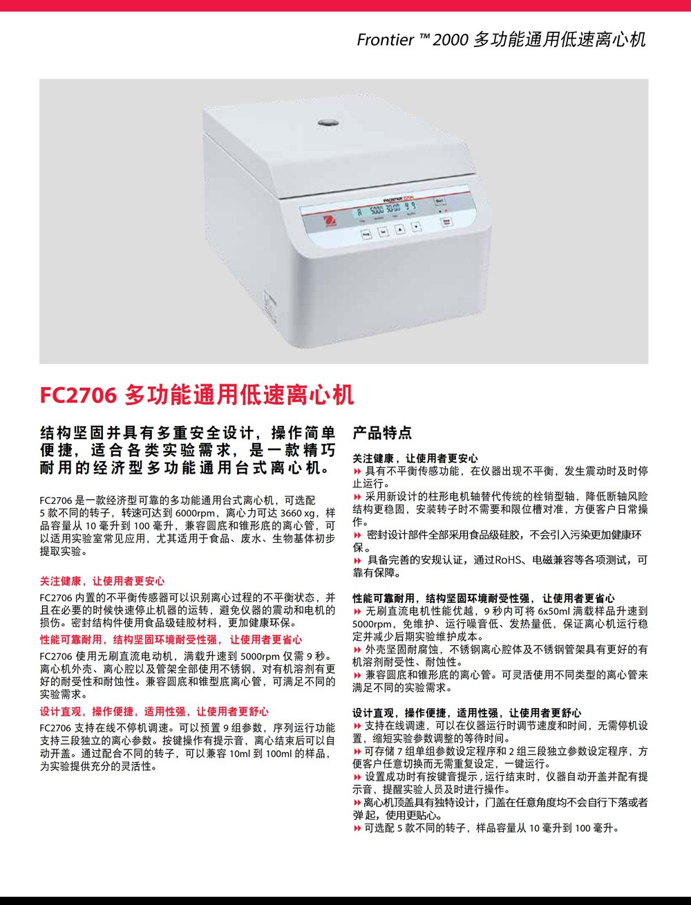 • OHAUS奧豪斯FC2706多功能通用低速離心機(jī)實(shí)驗(yàn)室經(jīng)濟(jì)型臺式離心機(jī)