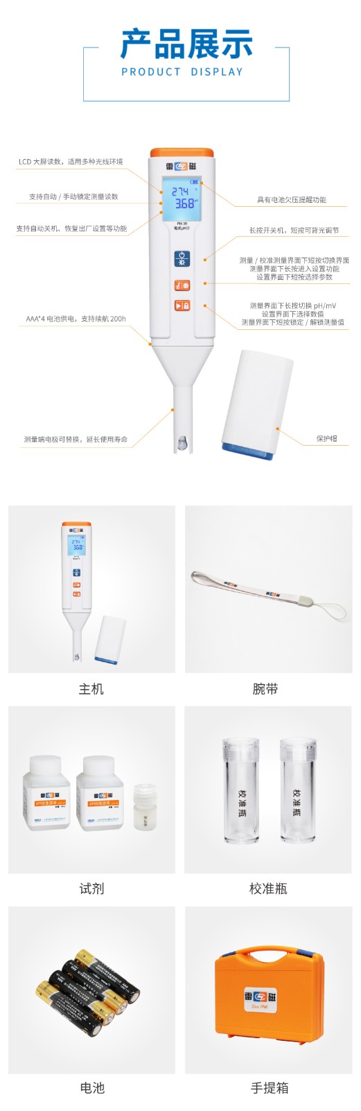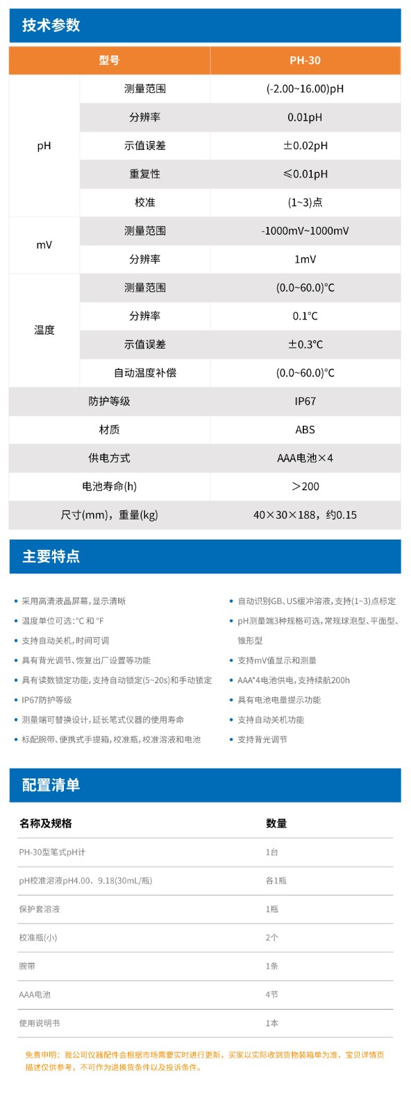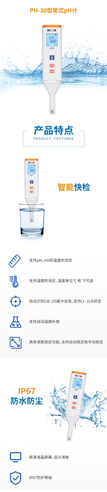 • 【雷磁】PH-30型筆式pH計(jì)(球泡型)水質(zhì)檢測(cè)酸度計(jì)