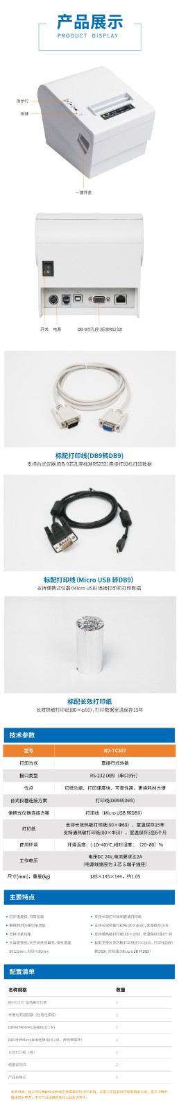 【雷磁】RD-TC307型直接行式熱敏打印機(jī)