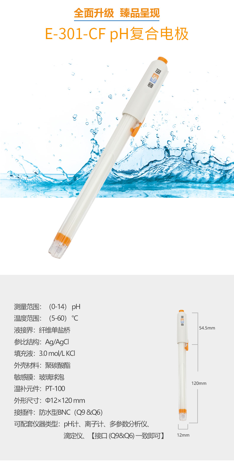 • 【雷磁】E-301-CF型pH三復合電極