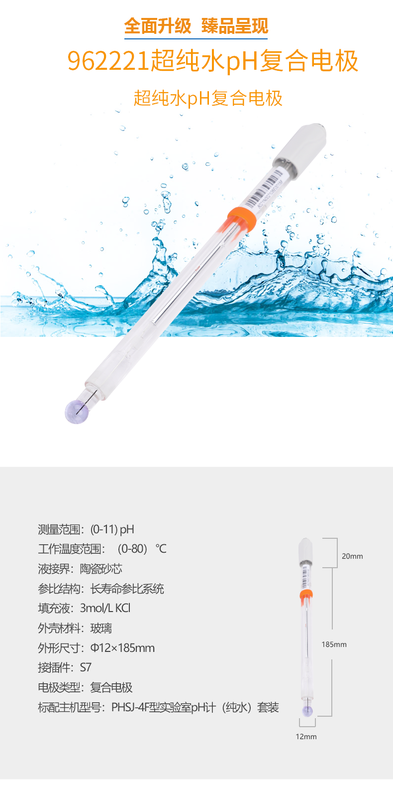 • 【雷磁】高端ph電極962221超純水ph復(fù)合電極