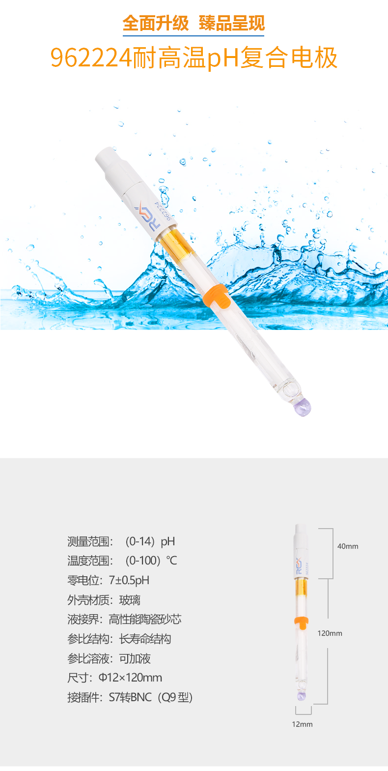 • 【雷磁】高端ph電極高精度 962224耐高溫ph復合電極