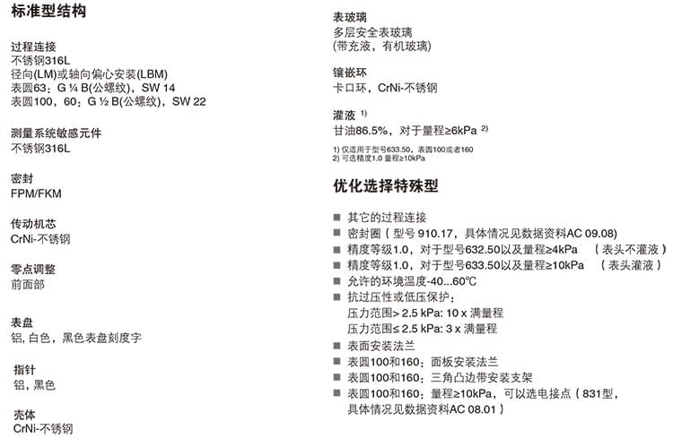 2. 膜片壓力表,化學(xué)工業(yè)型,表頭不充液/充液,高過(guò)壓保護(hù)壓力表,針對(duì)UHP應(yīng)用:422.12 432.50 432.56 423.36 423.25