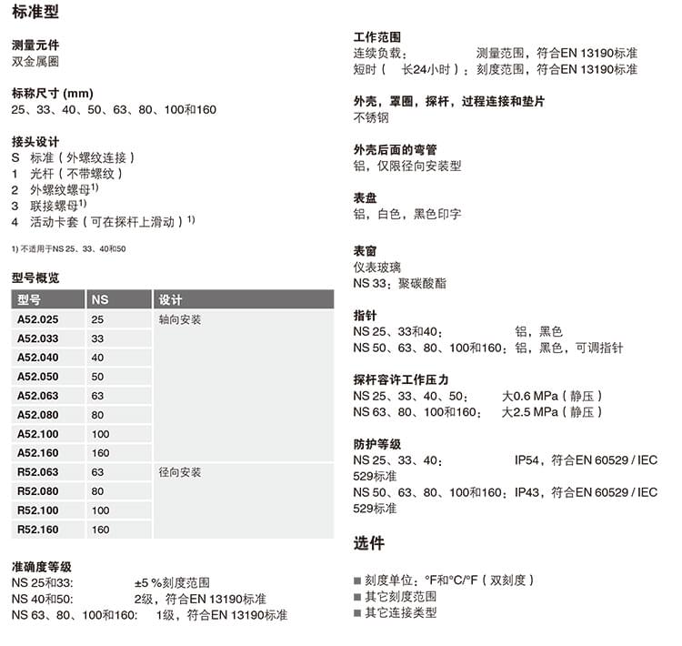 EN13190 全系列溫度計(jì)  A52 R52 徑向軸向雙金屬溫度計(jì)