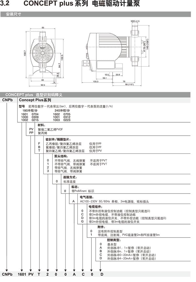 【普羅名特CONCEPT plus系列計量泵】參數(shù)規(guī)格