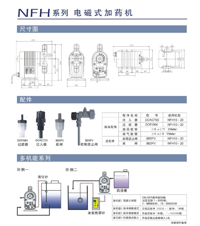 NIKKISO EIKO 結(jié)合電子與定量加藥機(jī)之技術(shù),研發(fā)泛用型的電磁式加藥機(jī),液體接觸部以之耐蝕材質(zhì)為標(biāo)準(zhǔn),外型,體積小,易安裝。NFH系列高精度、率、寬頻泛用電壓,適用地區(qū)廣。