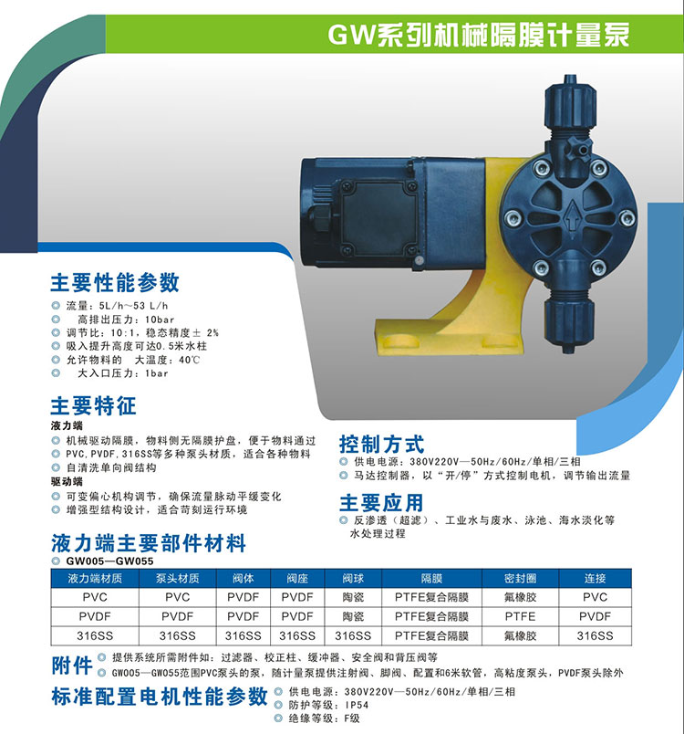 小型加藥泵GW025 機(jī)械驅(qū)動隔膜計量泵 24L 7bar PVC 水處理往復(fù)泵