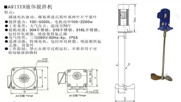 攪拌能力:100~2000L,電機(jī)功率 100~400W