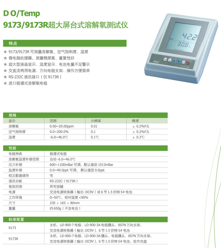 9173R型臺(tái)式大屏溶解氧測(cè)試儀 JENCO/任氏極譜型傳感器溶氧儀表