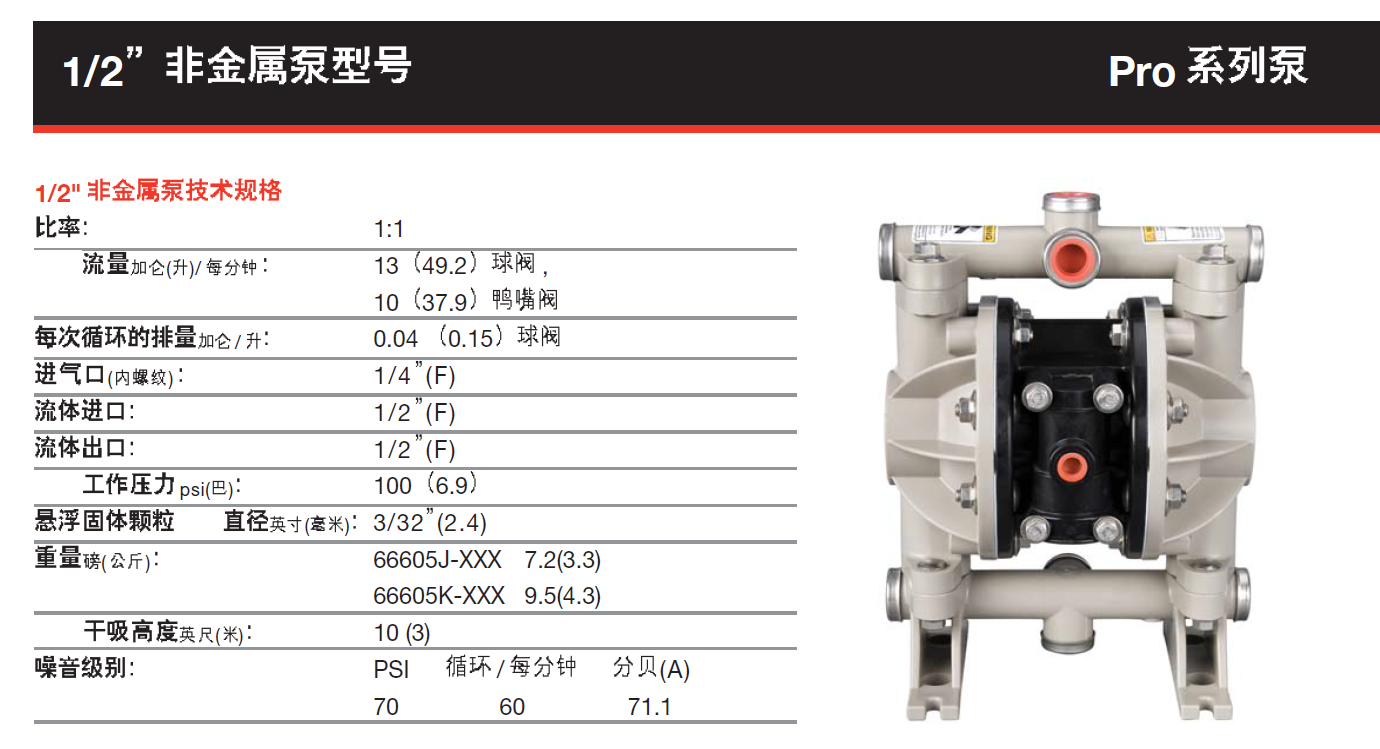 • ARO(英格索蘭)1/2寸非金屬氣動泵66605J-3EB-C