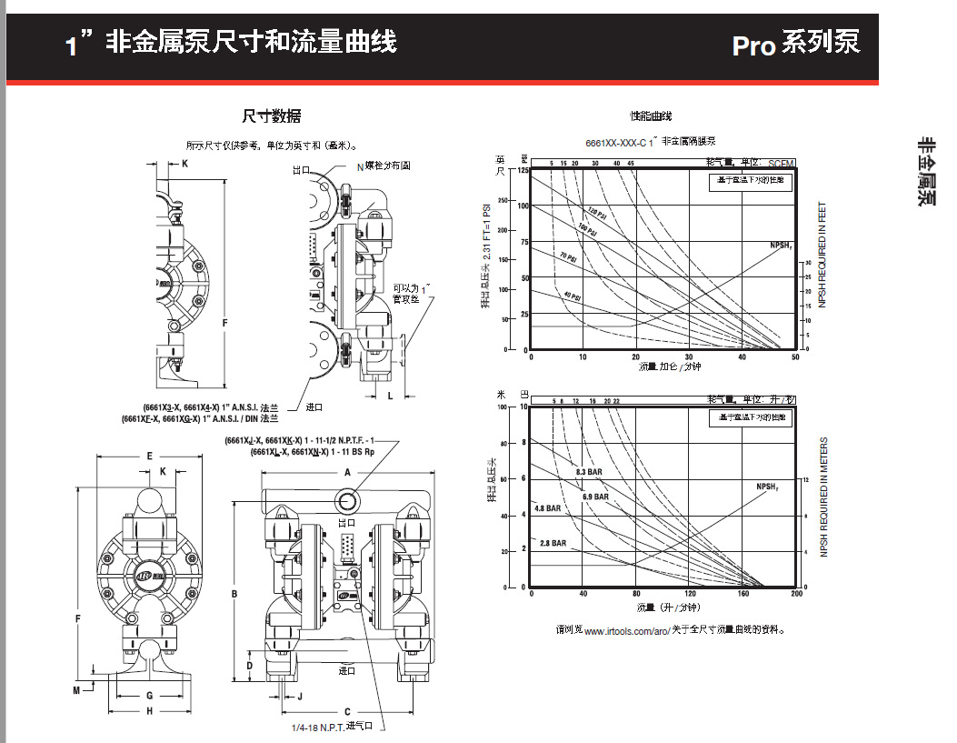 英格索蘭氣動(dòng)隔膜泵非金屬ARO氣動(dòng)泵6661A3-3EB-C