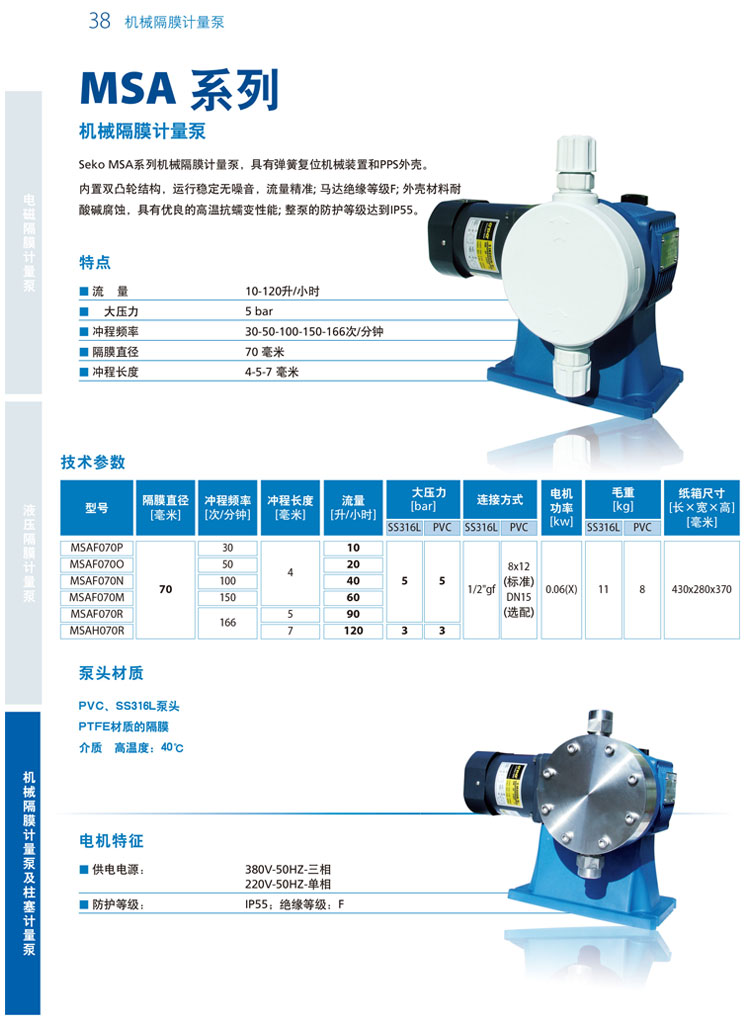 • SEKO賽高M(jìn)SA系列加藥泵PVC泵頭機(jī)械隔膜計量泵