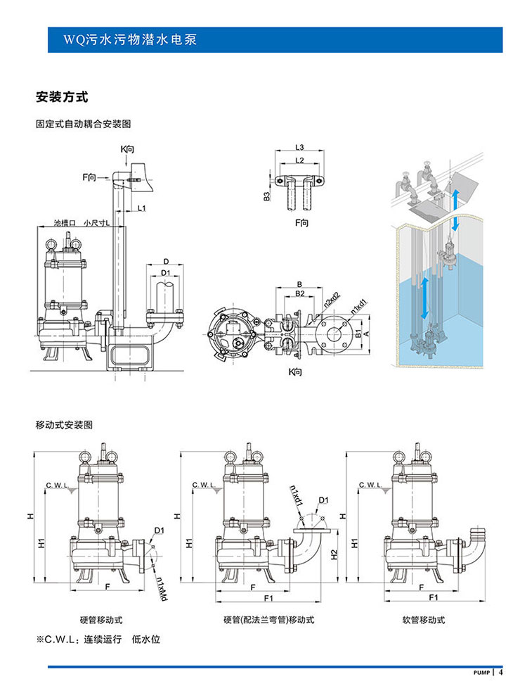 應(yīng)用領(lǐng)域:工廠、商業(yè)污水排放、鍋爐給水和冷凝系統(tǒng)、建筑工地、人防系統(tǒng)排水站、市政排污工程、雨水排放