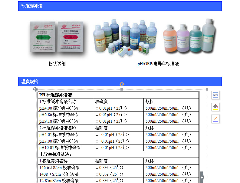 緩沖液與保存液非常重要,尤其對(duì)于昂貴的設(shè)備,其傳感器(如PH電極)缺乏適當(dāng)?shù)谋pB(yǎng),就無(wú)法發(fā)揮它 優(yōu)的功能,比如說(shuō)使用壽命,精度等。我們提供的校正液均有純度等級(jí) 高的試劑,準(zhǔn)確稱量,嚴(yán)格按照實(shí)驗(yàn)室操作規(guī)程配制而成。