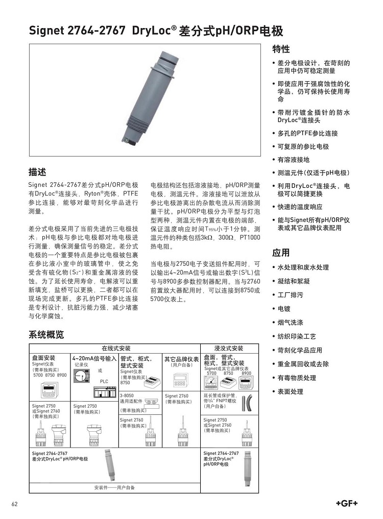 GF差分式PH/ORP電極3-2764-2 酸度計(jì)探頭
