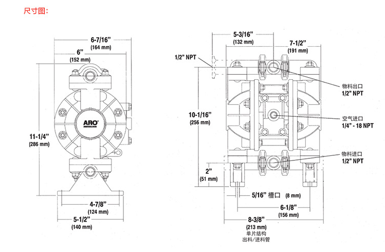 • 英格索蘭氣動隔膜泵非金屬1/2寸ARO氣動泵66605J-344隔膜泵