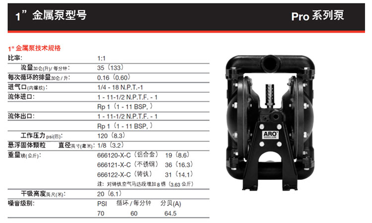 • 金屬氣動(dòng)泵英格索蘭氣動(dòng)隔膜泵66612B-244-C耐磨隔膜泵
