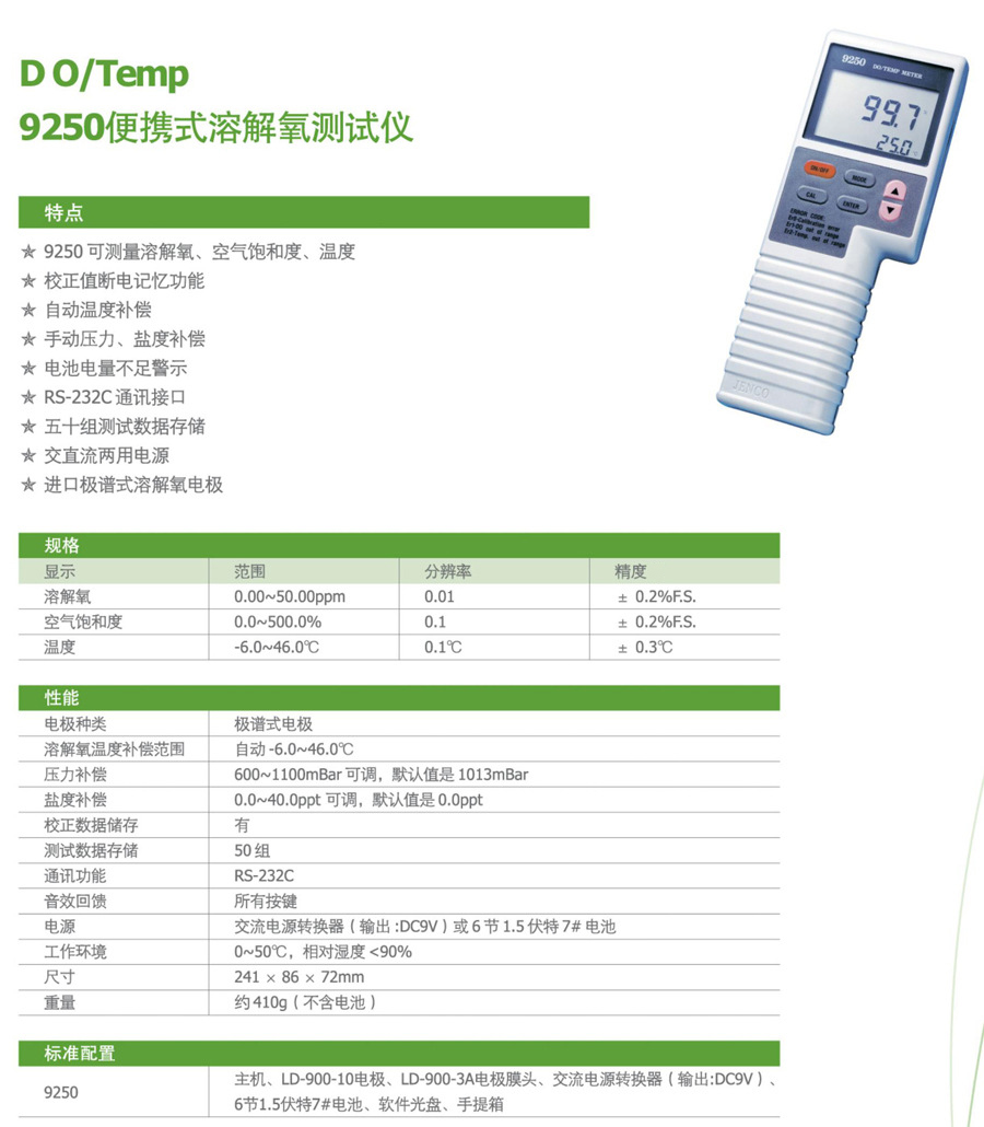 溶解氧測試儀9250型 JENCO/任氏便攜式數(shù)顯實(shí)驗(yàn)室空氣飽和度儀器