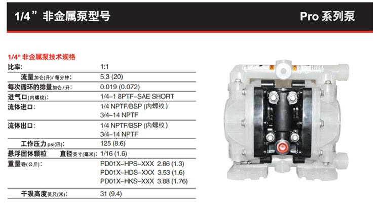 • 英格索蘭氣動隔膜泵1/4寸非金屬ARO隔膜泵PD01P-HPS-PAA-A