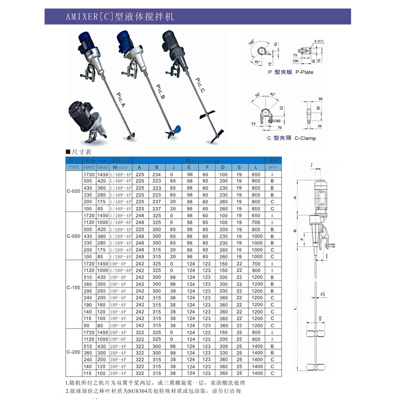 [不銹鋼攪拌機(jī)]amixer愛米克斯C系列可移動(dòng)式立式加藥液體攪拌機(jī)