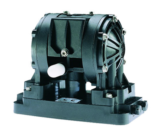 1/4 英寸容積式雙隔膜泵配備特氟龍(PTFE)和山道橡膠膜片,更加耐久??蛇x聚丙烯、乙縮醛和聚偏氟乙烯(PVDF)材質(zhì)。