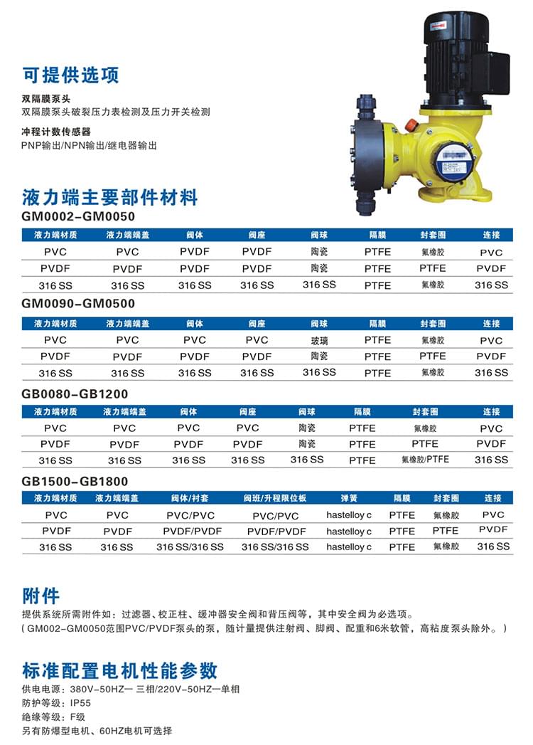 GM型機(jī)械隔膜計(jì)量泵】PVC泵頭加藥泵主要性能參數(shù)
